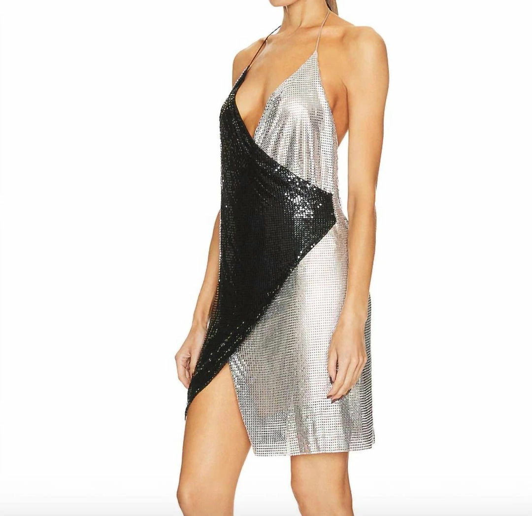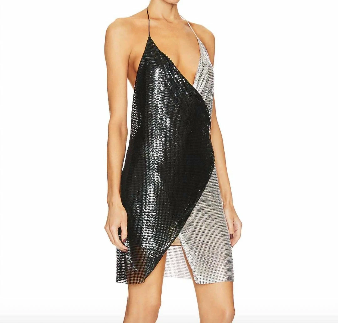 Wholesale โ๏ธ Alice + Olivia Ally Chainmail Wrap Mini ๐ Dress in Black/Silver for ๐ฉ women โ