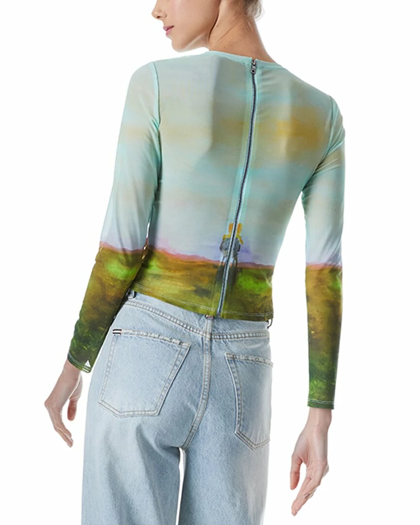 - Delaina Crop Top In Colms Painting With Mesh Detail