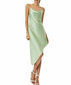 - Harmony Asymmetrical Slip Dress In Light Sage