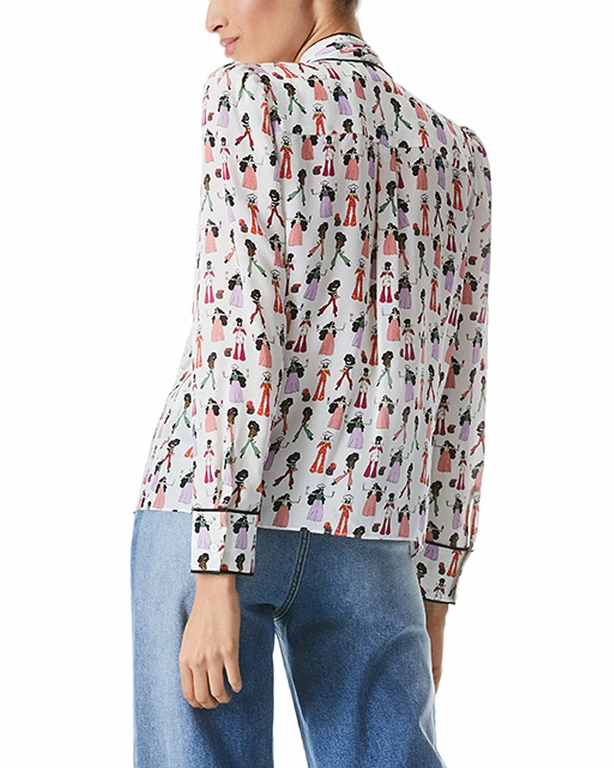- Jeannie Bow Collar Silk Top In Chef Stacey