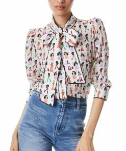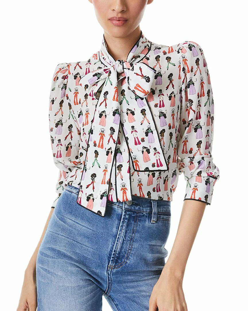 Deals β€οΈ alice + olivia Jeannie Bow Collar Silk Top for π© women π