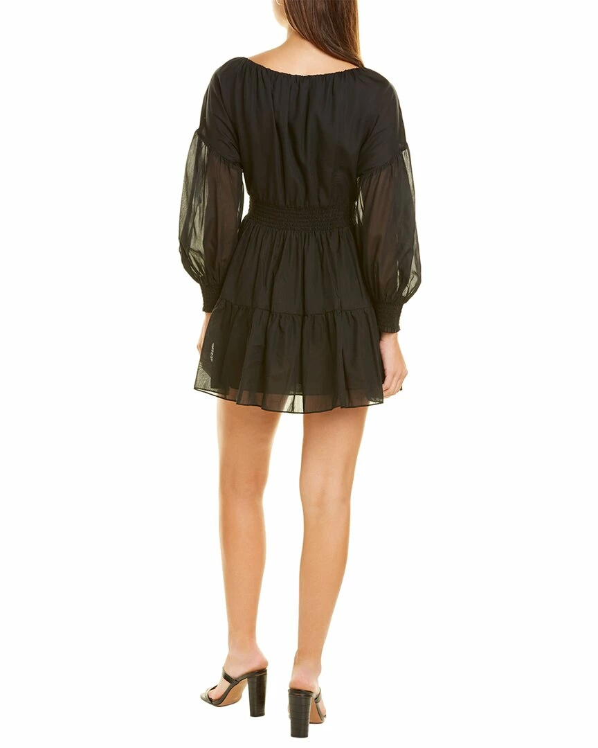 - Kiara Silk-Blend Mini Dress In Black With Semi-Sheer Puff Sleeves, Smocked Waistband, And Tiered Skirt