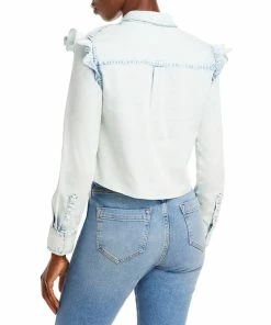 Best Pirce 🔔 Alice + Olivia Hannah 👩 Womens Ruffled Denim Button-Down Top ✨